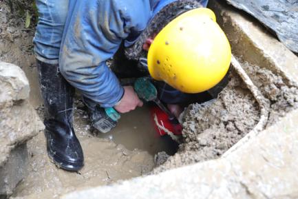 因漏水量大,工作人員來不及更換雨鞋就緊急關閥止水,為了讓搶修速度更快,師傅們直接跳到1米多深的水泥坑里用鍬、鏟等各類工具開挖漏點;拆卸、安裝、焊接,一刻也不停歇;抽干積水,清理路面。大家分工協(xié)作,經(jīng)過四個小時的奮力搶修,終于維修完畢,開閘通水。此時,搶修人員的衣服、鞋子早已被水浸透,寒風中,大家凍得瑟瑟發(fā)抖、雙手麻木通紅,但他們每個人的內(nèi)心都充滿了欣慰,因為他們在這個飄雪團圓的小年里,又一次用實際行動給居民群眾送去了“放心水”。