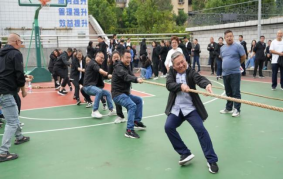 當(dāng)拔河比賽口令響起,只見參賽的隊(duì)員們緊握長繩,卯足了勁拼命往后拉,未能上場參賽的候補(bǔ)隊(duì)友們?yōu)樽约罕荣愱?duì)友吶喊助威。吶喊聲、歡呼聲此起彼伏,現(xiàn)場激烈的比賽將整個(gè)活動(dòng)推向了高潮。