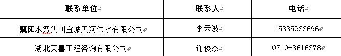 招標人:襄陽水務集團宜城天河供水有限公司